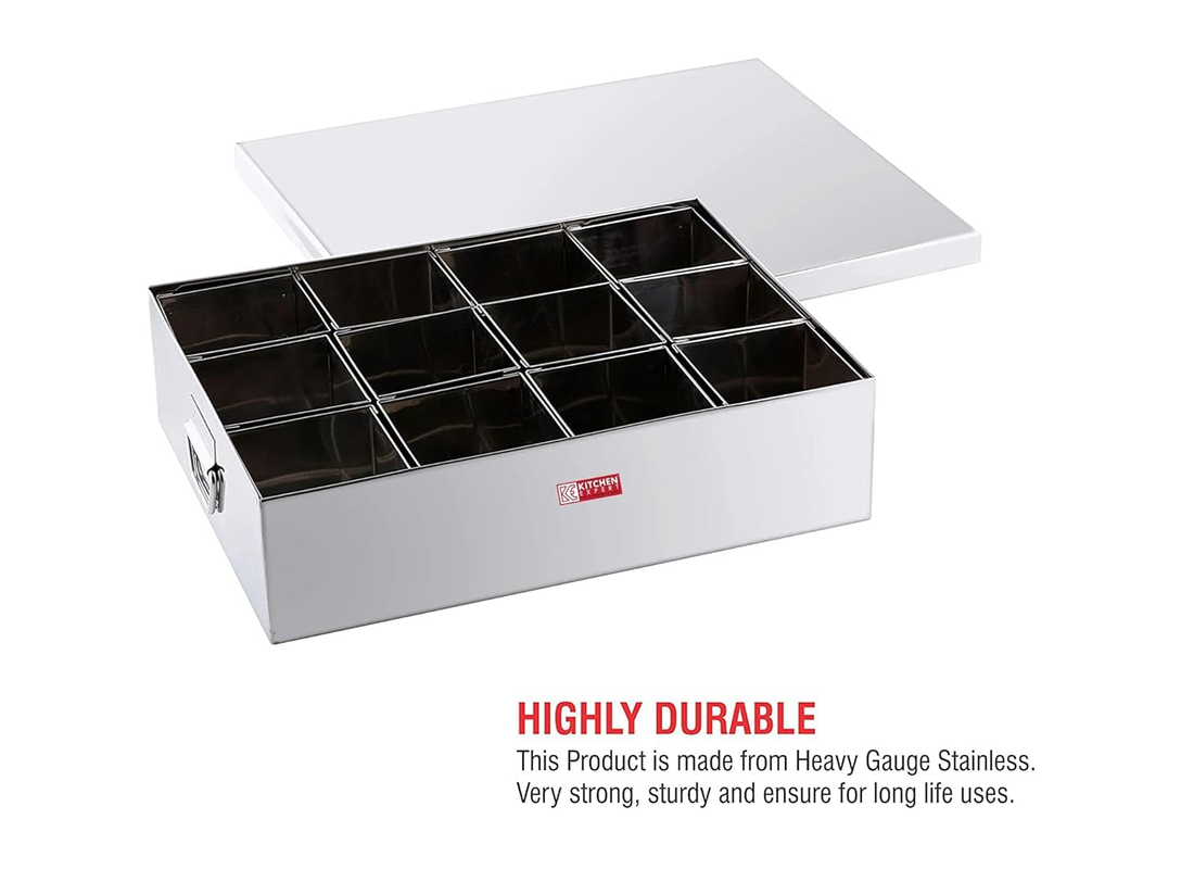 Stainless Steel Commercial Masala Dabba Spice Box | Big Masala Dani| Jumbo Masala Box with 12 Compartments