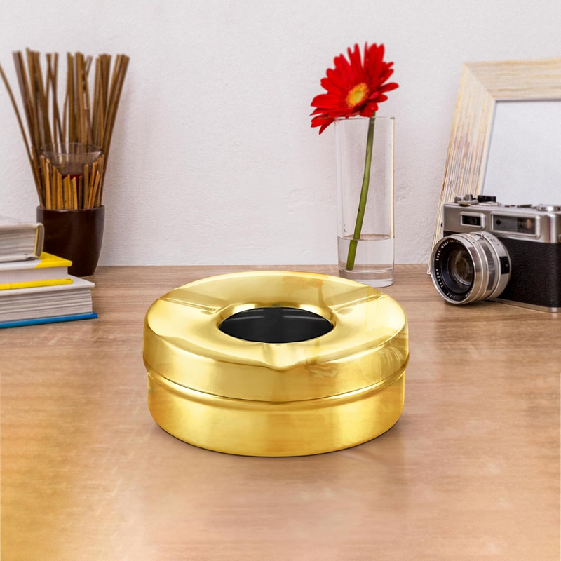 AshTray | 1PC | Ideal For Home/Restaurant/Club | Portable | 3 Cigarette Holder Slots | Steel Round Tabletop