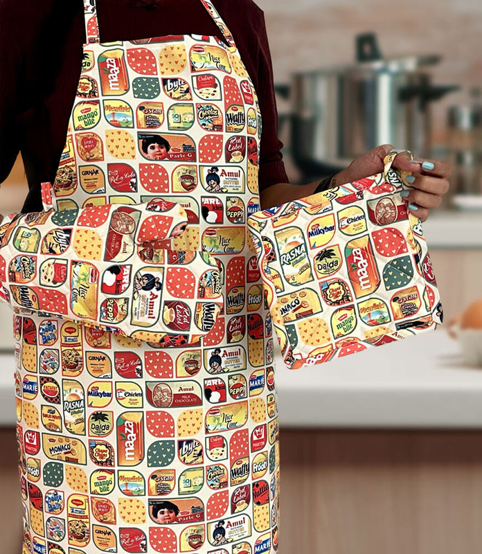 Maatir Nostalgia Foods Apron With Oven Mitt And Potholder | 3 Piece Apron Set, Oven Glove, Pot Holder